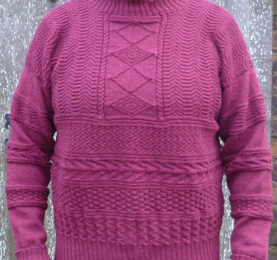 Authentic hand-knitted Ganseys in 5-ply worsted wool, and Gansey Knitting Kits